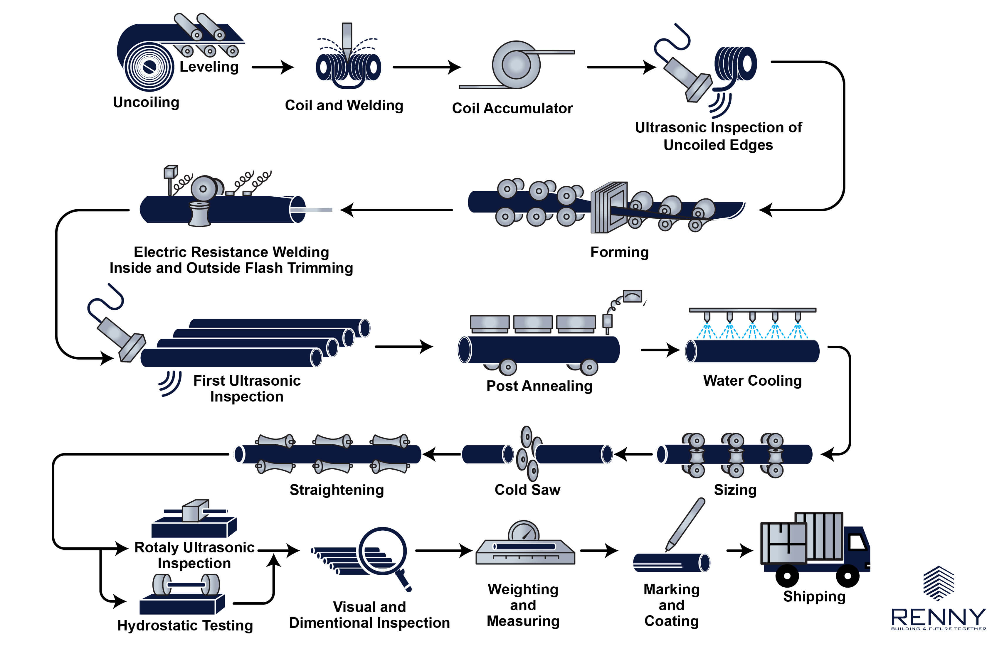 In the dynamic sphere of ERW pipe manufacturing, RENNY's PIPE Division emerges as a beacon of innovation, leveraging advanced methodologies and an unwavering commitment to quality, ensuring that our brand remains a trusted name in the ERW market landscape.